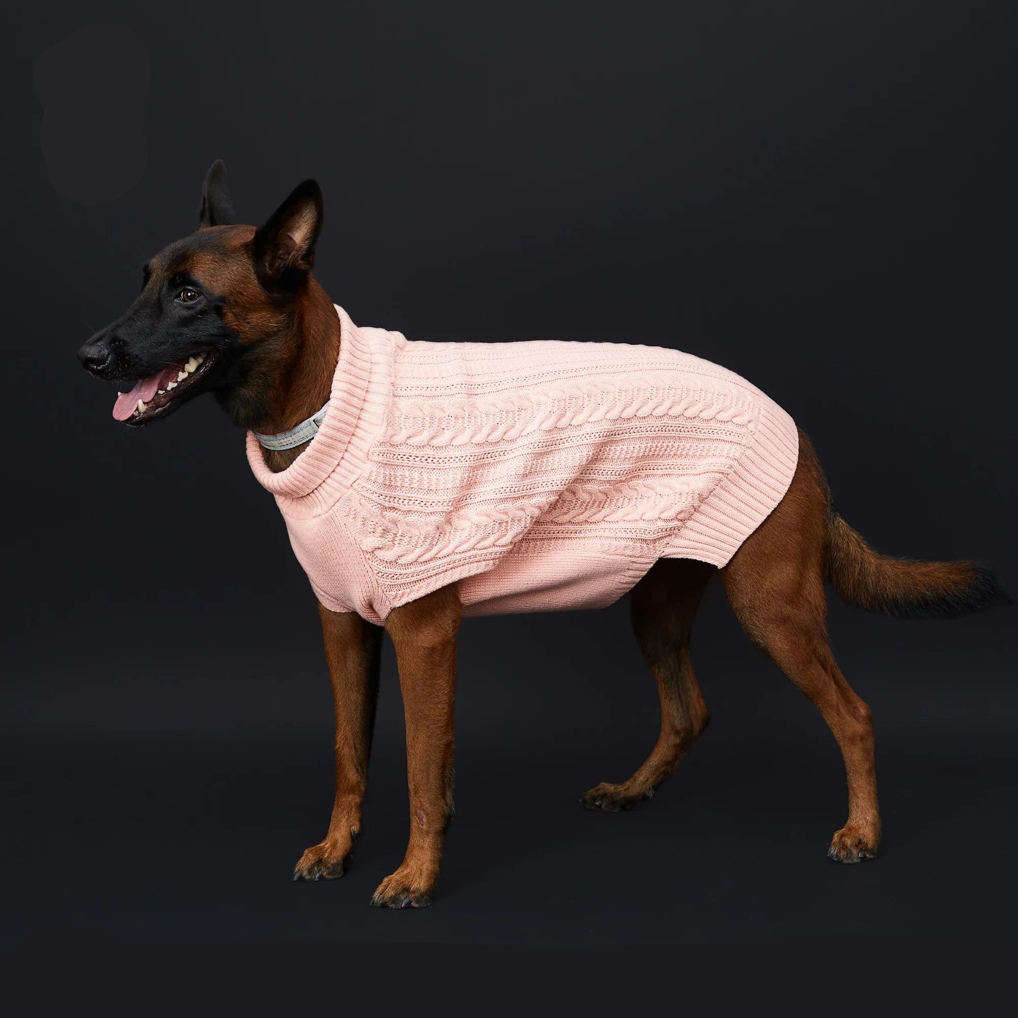 Estilo e Elegância em Tricô: Com um charmoso design em trança (cable-knit), esta roupa não só aquece, mas também veste seu melhor amigo com um toque de sofisticação. Disponível em cores lindas como rosa, cáqui, verde e roxo para combinar com a personalidade única do seu pet!