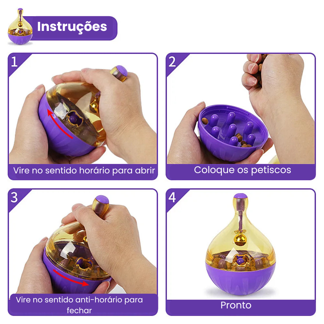 Uso: Dispensa petiscos e ração lentamente.