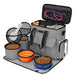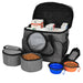 Acessórios Incluídos: 2 recipientes para alimentos, 2 tigelas de silicone dobráveis, 1 jogo americano, alça removível e ajustável, mosquetões extras.