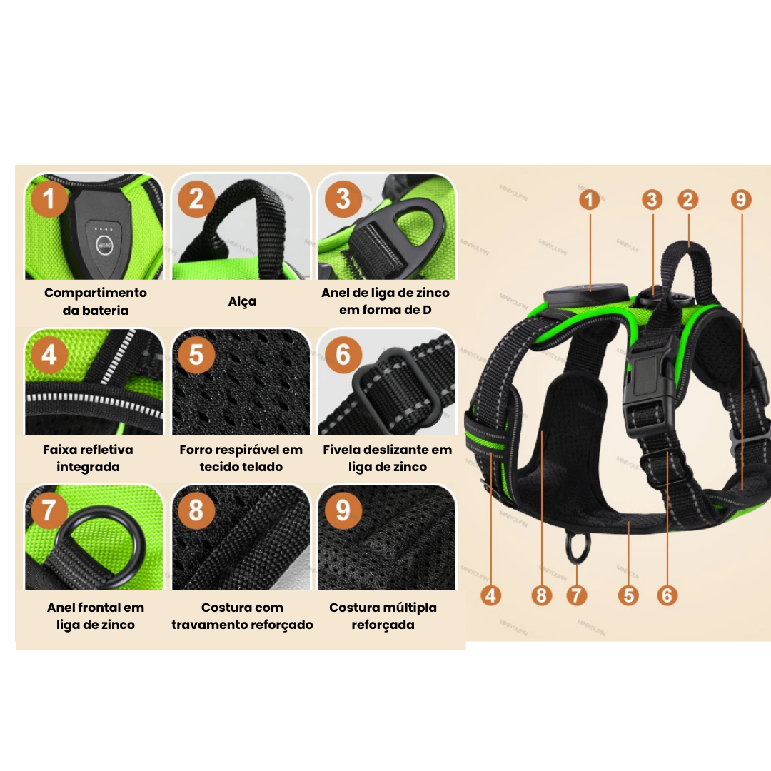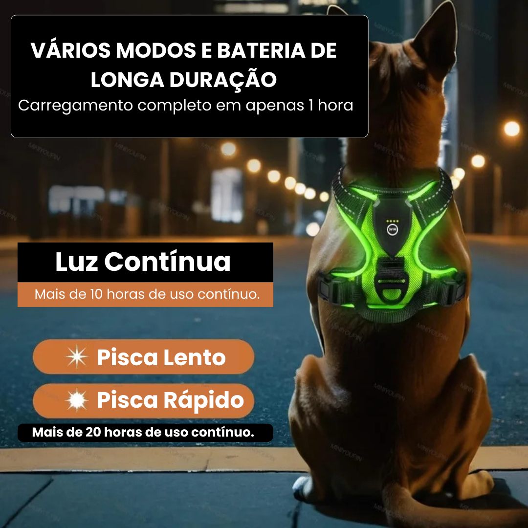 Proporcione ao seu melhor amigo a segurança e conforto que ele merece com nosso Peitoral LED Recarregável! Perfeito para passeios noturnos, ele garante que seu pet esteja sempre visível, transformando caminhadas em momentos de diversão e amor, mesmo nas noites escuras.